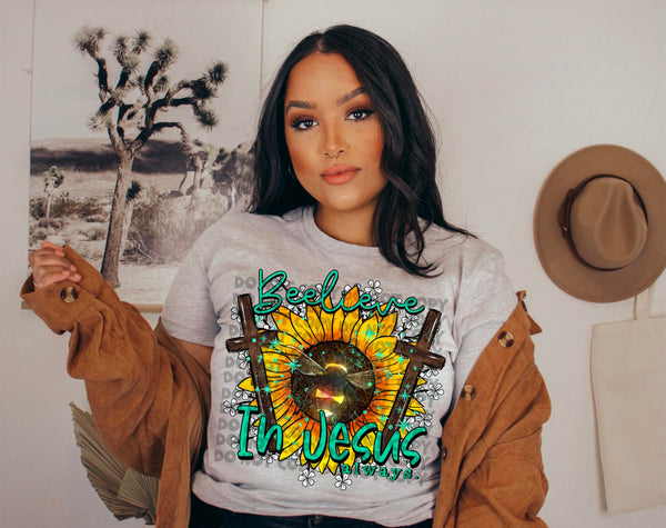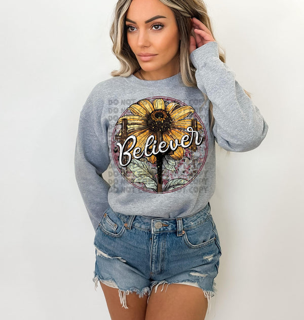Believer cross and sunflower in circle 2474 DTF TRANSFER