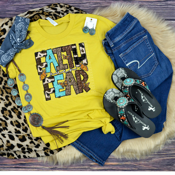 Faith over fear cowhide turquoise leopard font amd butterflies DTF TRANSFER