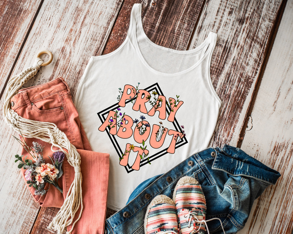 Pray About It Floral Border Peach Color 112434 DTF TRANSFER