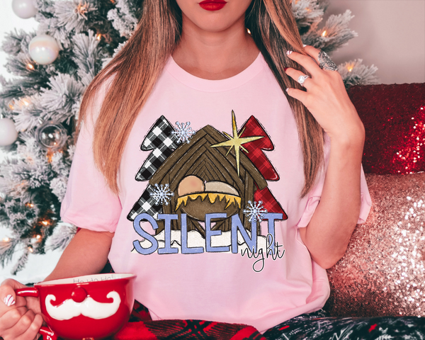 Silent Night Christmas Trees Manger Snowflakes 1011 DTF TRANSFER