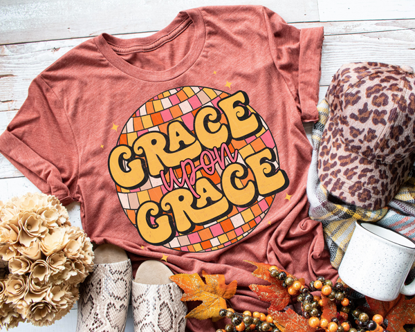 Grace Upon Grace Retro Disco Ball Yellow Font 112444 DTF TRANSFER