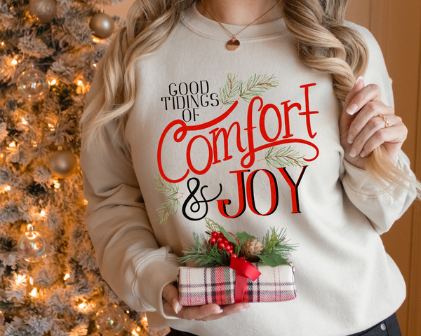 Good Tidings of Comfort and Joy Red Black Font 1038 DTF TRANSFER