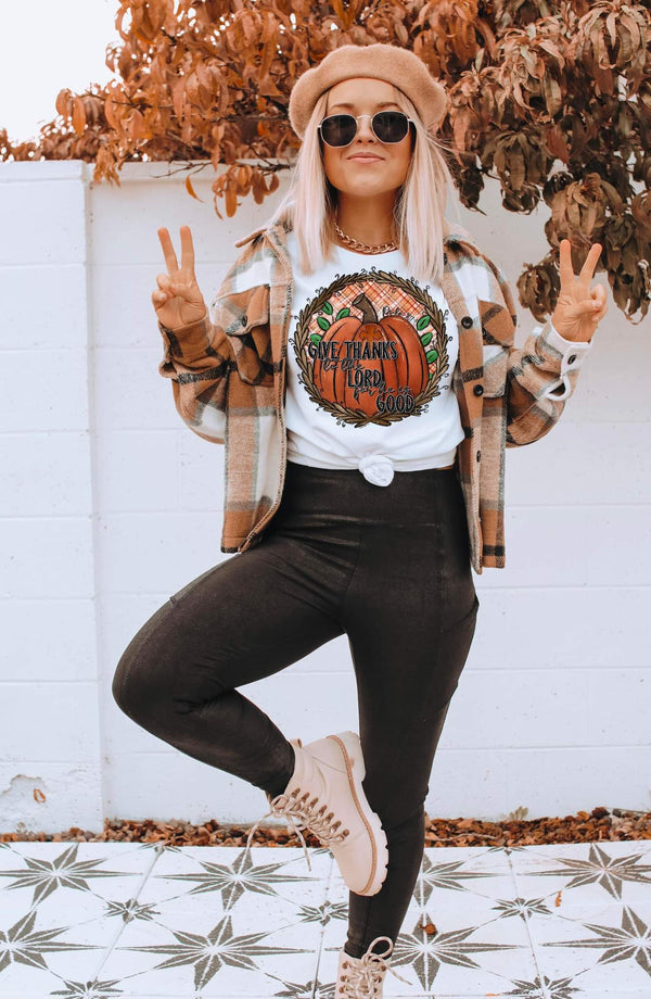 Give thanks to the Lord for he is good circle with pumpkin 112361 DTF TRANSFER