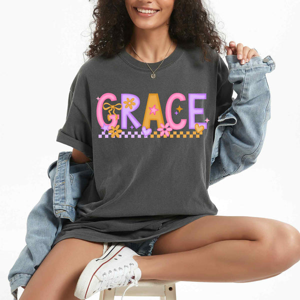 Grace checkered neon colors EXCLUSIVE DTF transfer