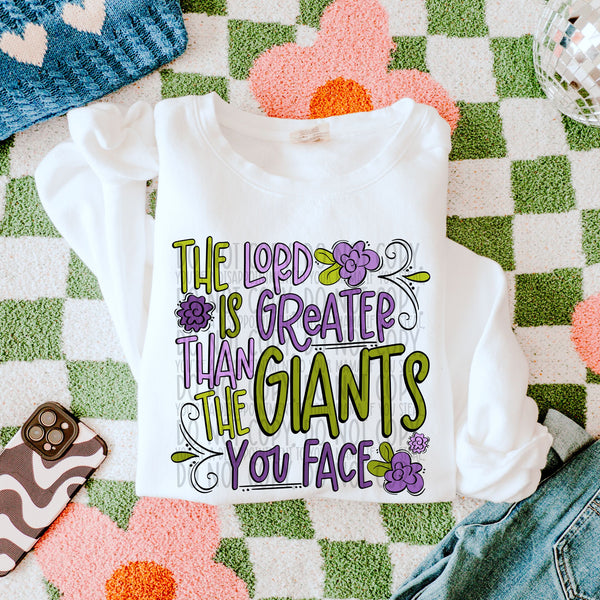 The lord is greater than the giants purple and green (SWD) 106892 DTF transfer