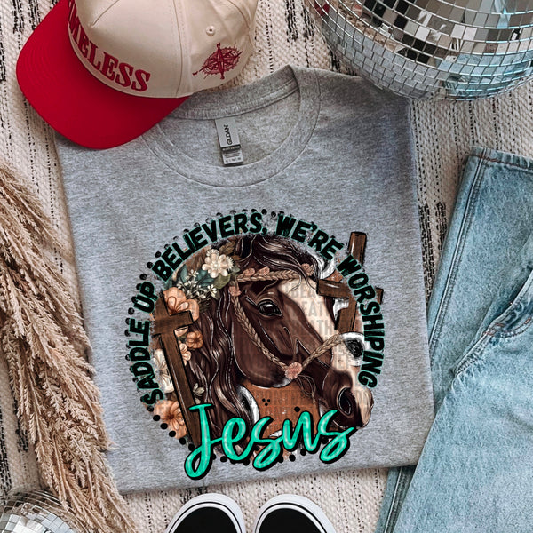 A saddle of believers were worshipping Jesus 103434 DTF transfer