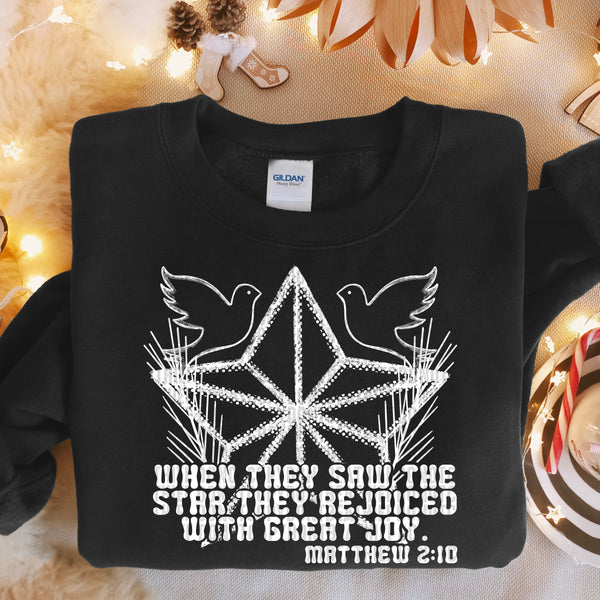 When they saw the star they rejoiced with joy WHITE 103402 DTF transfer