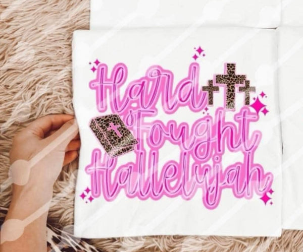 Hard fought hallelujah pink font (JBD) 96662 DTF transfer