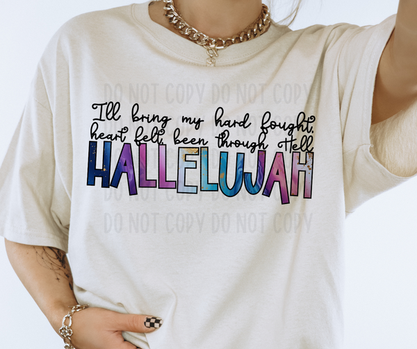 I'll bring my hard fought hard felt been through hell hallelujah (canvista) DTF transfer