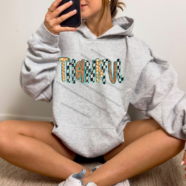 Grateful Thankful Blessed Stacked teal and orange checker 114115 DTF transfer
