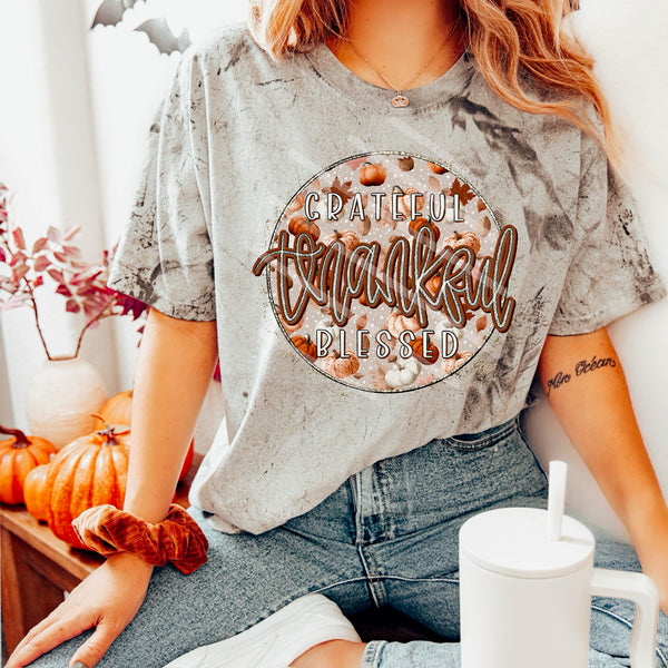 Grateful Thankful pumpkin circle 114091 DTF transfer