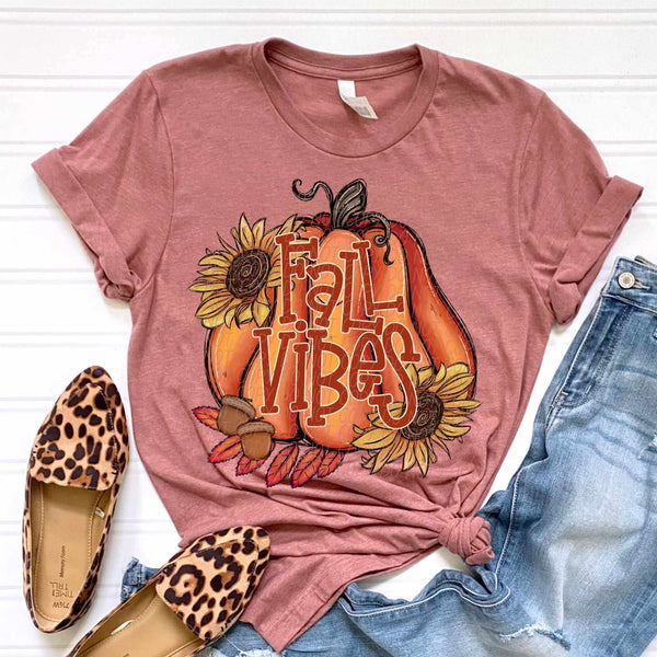 Fall vibes floral retro pumpkin CITY DTF transfer