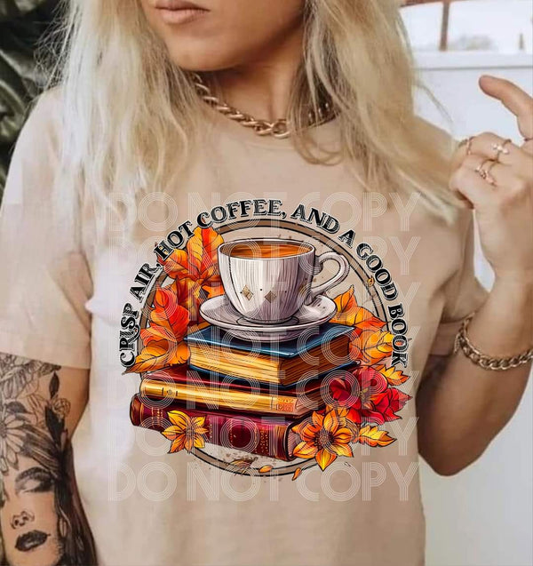 Crisp air hot coffee and a good book circle 1706 DTF TRANSFER