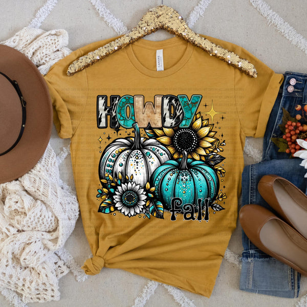 Howdy Fall Teal and Sunflower REVEL DTF transfer
