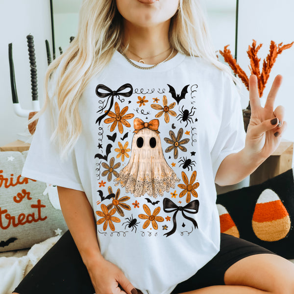 Ghost with pumpkin and orange bow 111105 DTF transfer