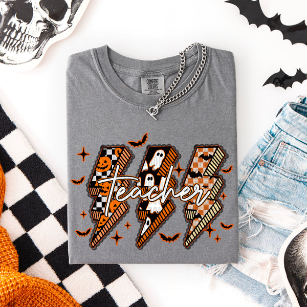 Teacher halloween lightning bolts ORANGE LACE 111122 DTF transfer