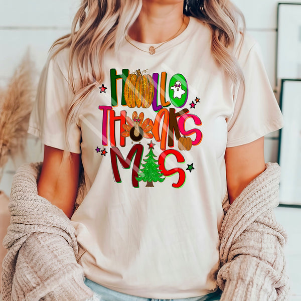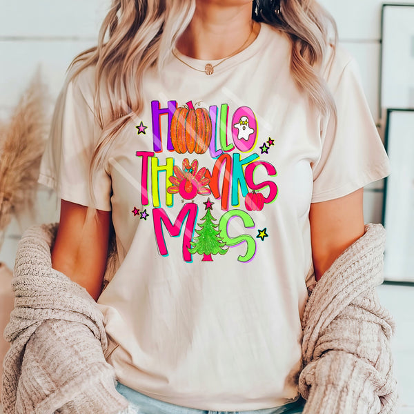 Hallothanksmas Neons pumpkin turkey tree 110542 DTF transfer