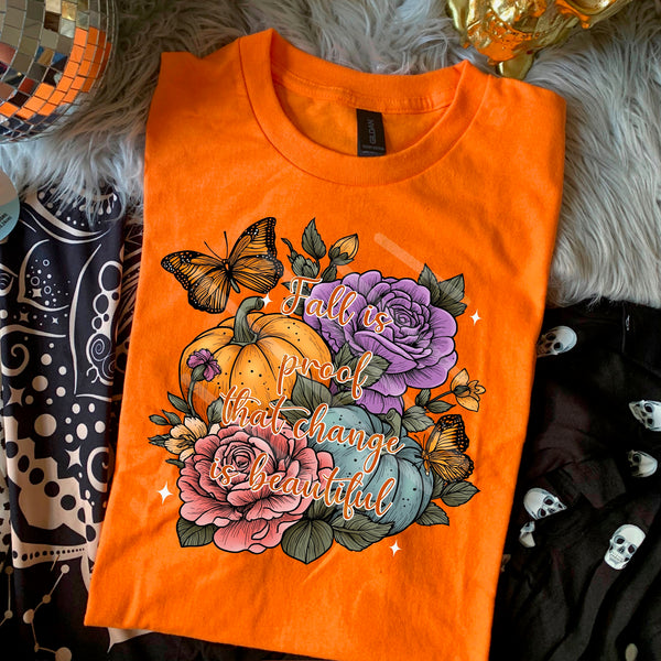 Fall Is proof change is beautiful pumpkin flowers and butterfly 110743 DTF transfer
