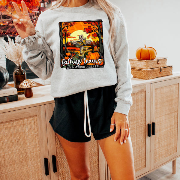 Falling leaves and Jesus Please square with butterflies 113934 DTF transfer