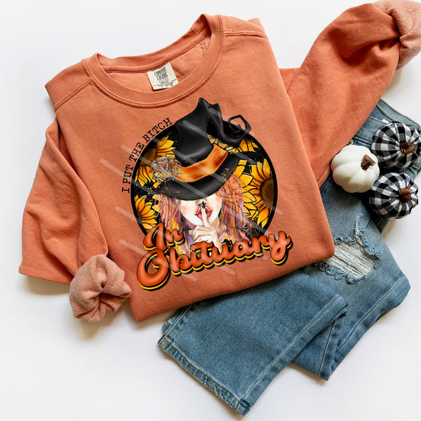 Bitch in obituary witch DTF transfer