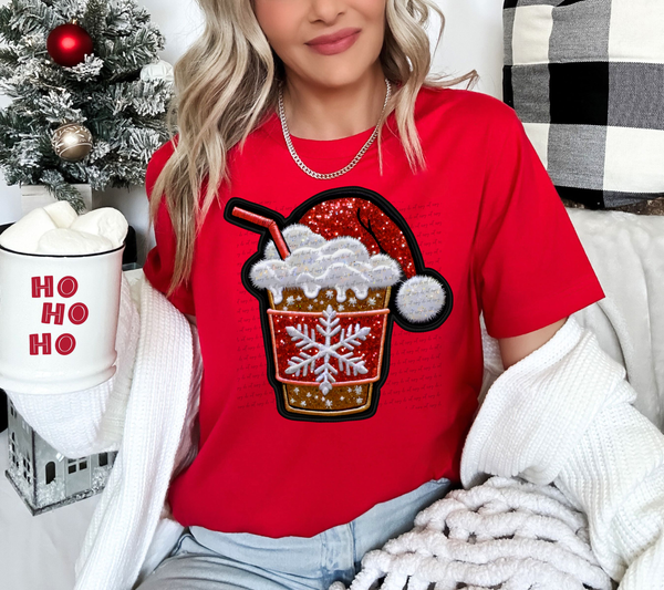Faux Embroidery Hot Cocoa Whipped Cream Snowflake Cup 61045 DTF Transfer