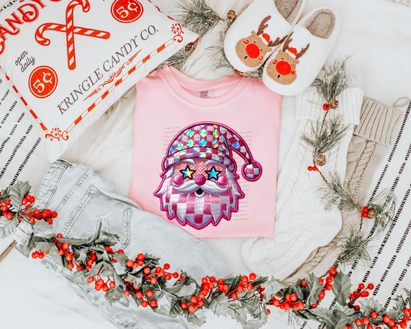 Faux Embroidery Santa Pink Plaid Mistletoe 61090 DTF Transfer