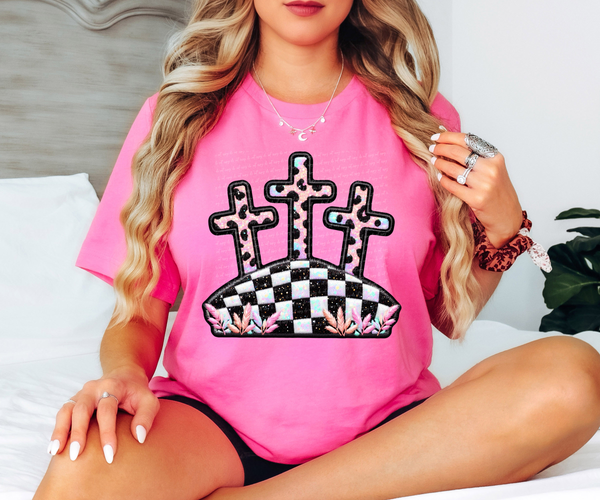 3 Crosses Checkered Faux Embroidery 81958 DTF Transfer