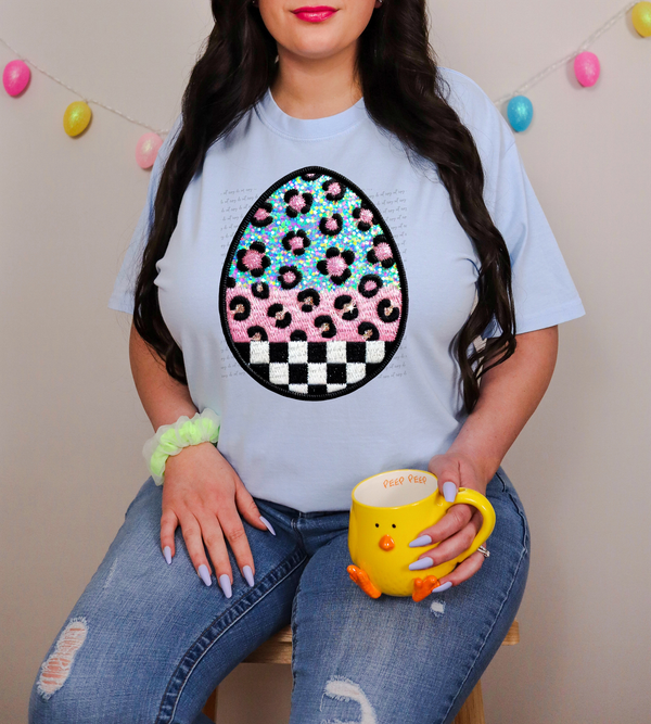 Faux Embroidery Sequins Checkered Easter Egg 86003 DTF Transfer