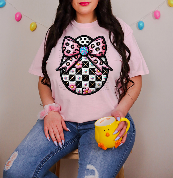 Polka Dot Bow Checkered Egg Faux Embroidery 86019 DTF Transfer