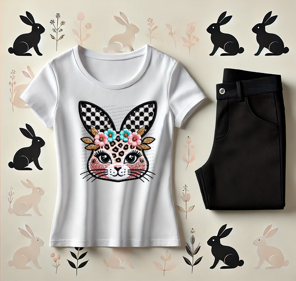 Bunny Head Floral Headband Faux Embroidery 81971 DTF Transfer