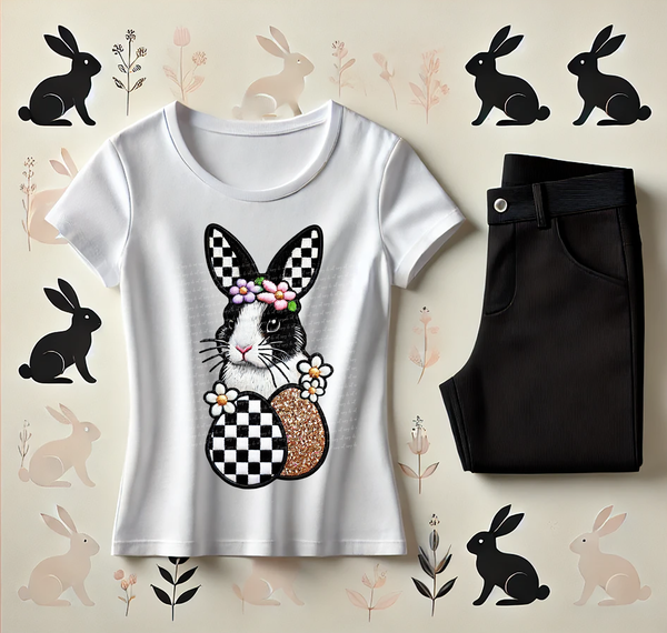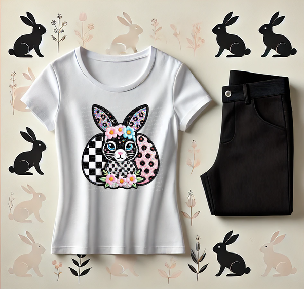 Checkered Bunny Ear And Eggs Faux Embroidery 81977 DTF Transfer