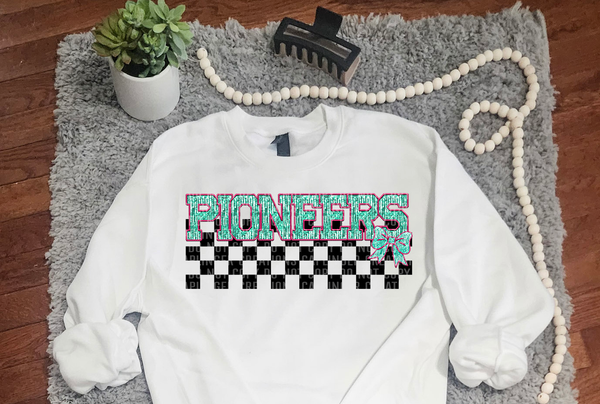 Turquoise And Pink Faux Embroidery Raiders 74108 DTF Transfer