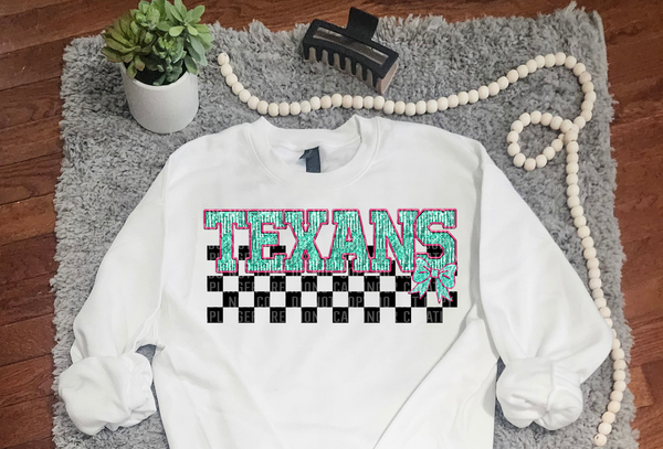 Turquoise And Pink Faux Embroidery Texans 74115 DTF Transfer