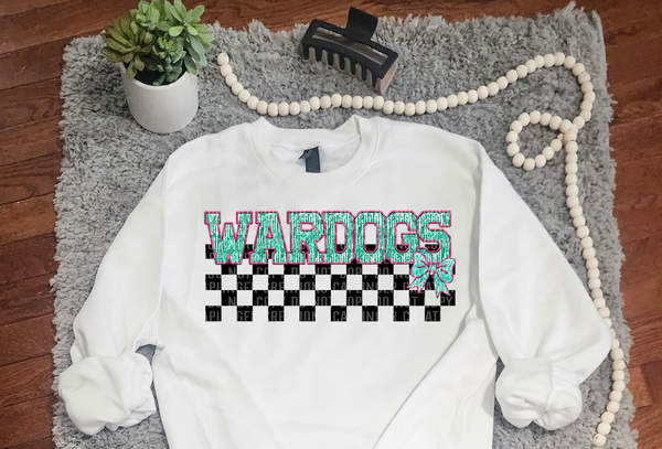 Turquoise And Pink Faux Embroidery Wardogs 74120 DTF Transfer