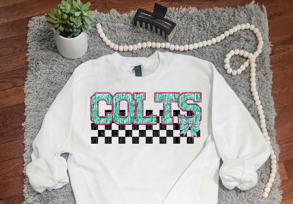Turquoise And Pink Faux Embroidery Colts 74074 DTF Transfer