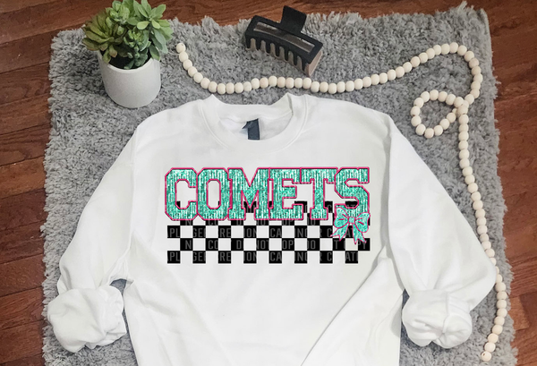 Turquoise And Pink Faux Embroidery Comets 74075 DTF Transfer