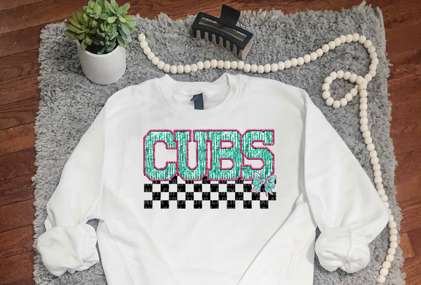 Turquoise And Pink Faux Embroidery Cubs 74079 DTF Transfer