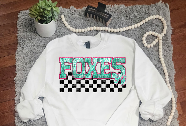Turquoise And Pink Faux Embroidery Foxes 74083 DTF Transfer