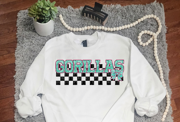 Turquoise And Pink Faux Embroidery Gorillas 74085 DTF Transfer