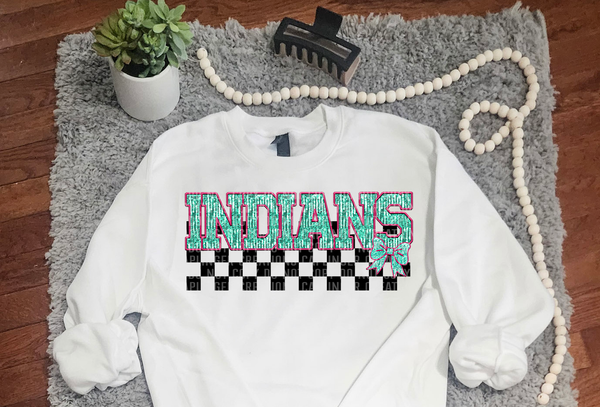 Turquoise And Pink Faux Embroidery Indians 74090 DTF Transfer
