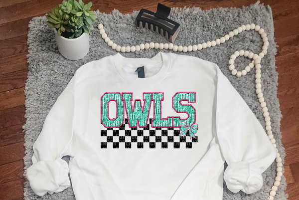 Turquoise And Pink Faux Embroidery Owls 74100 DTF Transfer
