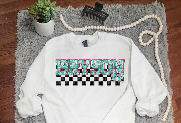 Turquoise And Pink Faux Embroidery Bryson 74068 DTF Transfer