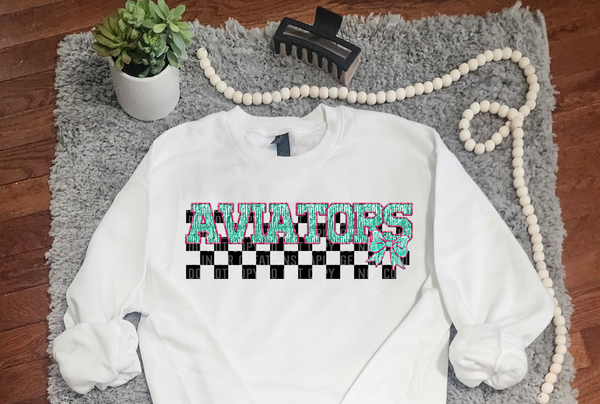 Turquoise And Pink Faux Embroidery Aviators 74062 DTF Transfer