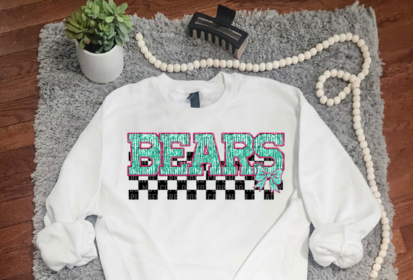 Turquoise And Pink Faux Embroidery Bears 74063 DTF Transfer