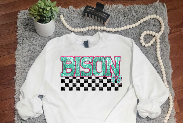 Turquoise And Pink Faux Embroidery Bison 74064 DTF Transfer