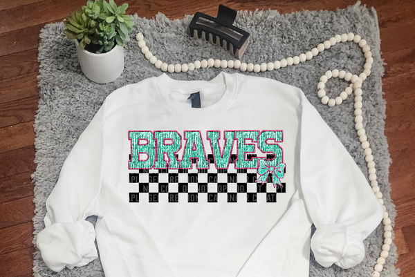 Turquoise And Pink Faux Embroidery Braves 74066 DTF Transfer