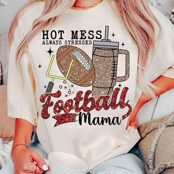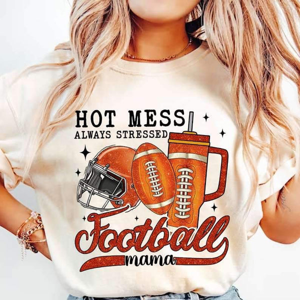 Hot mess always stressed football mama orange items 25132 DTF transfer