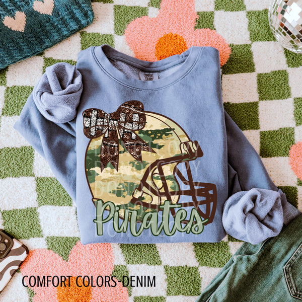 Pirates Camo Football Helmet with Bow (csg) DTF transferr