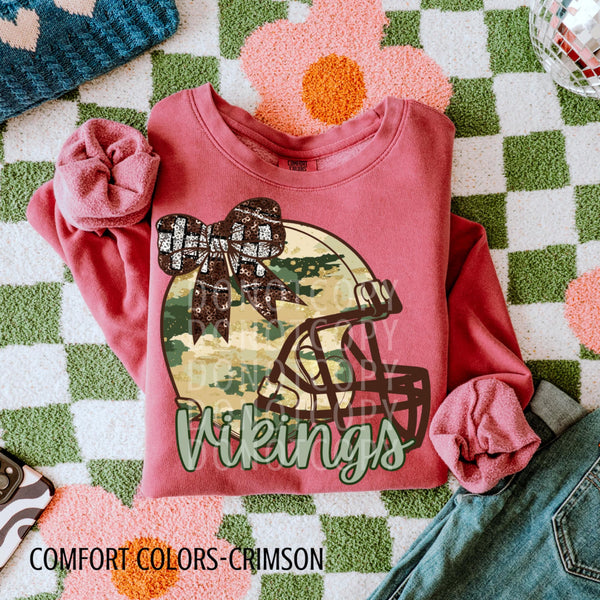 Vikings Camo Football Helmet with Bow (csg) DTF transfer