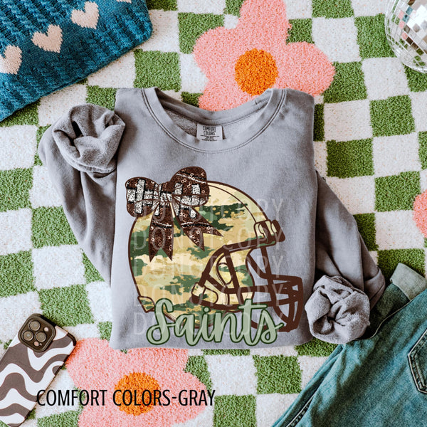 Saints Camo Football Helmet with Bow (csg) DTF transfer